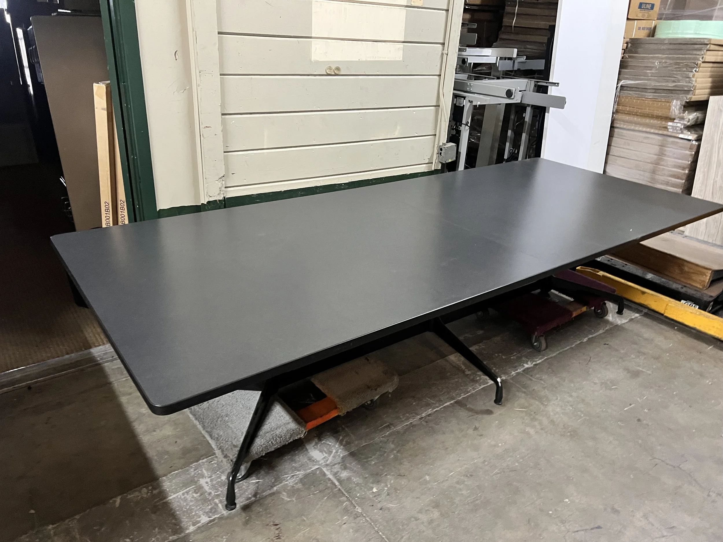 We have (1) Herman Miller Graphite Charcoal Grey Conference Table in sharp shape. Dimensions are 10ft x 4ft. The table itself is in sharp shape lightly used. This one won’t last. $999 for this conference table.
